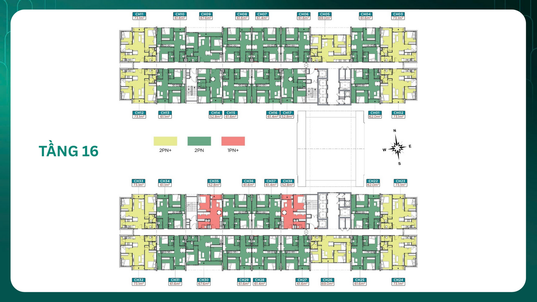 - Cơ cấu sản phẩm: gồm căn hộ 01 PN + 02PN + 03 PN